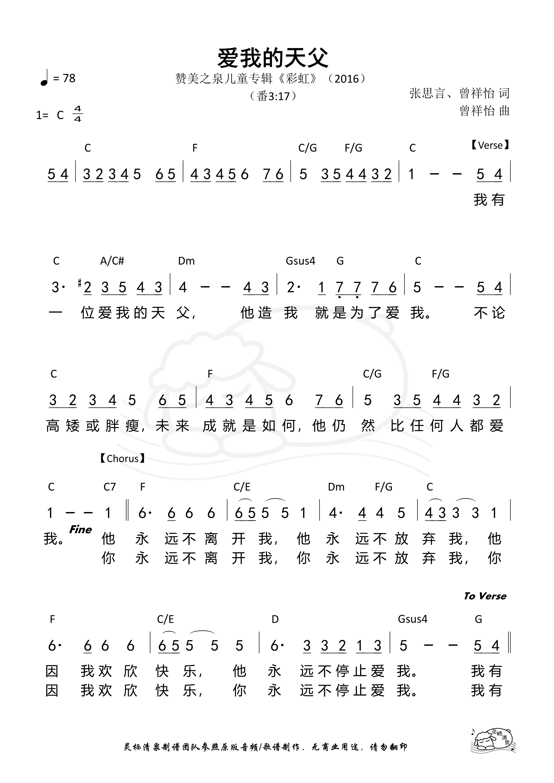 【其他版本】 爱我的天父(C调/约书亚乐团)