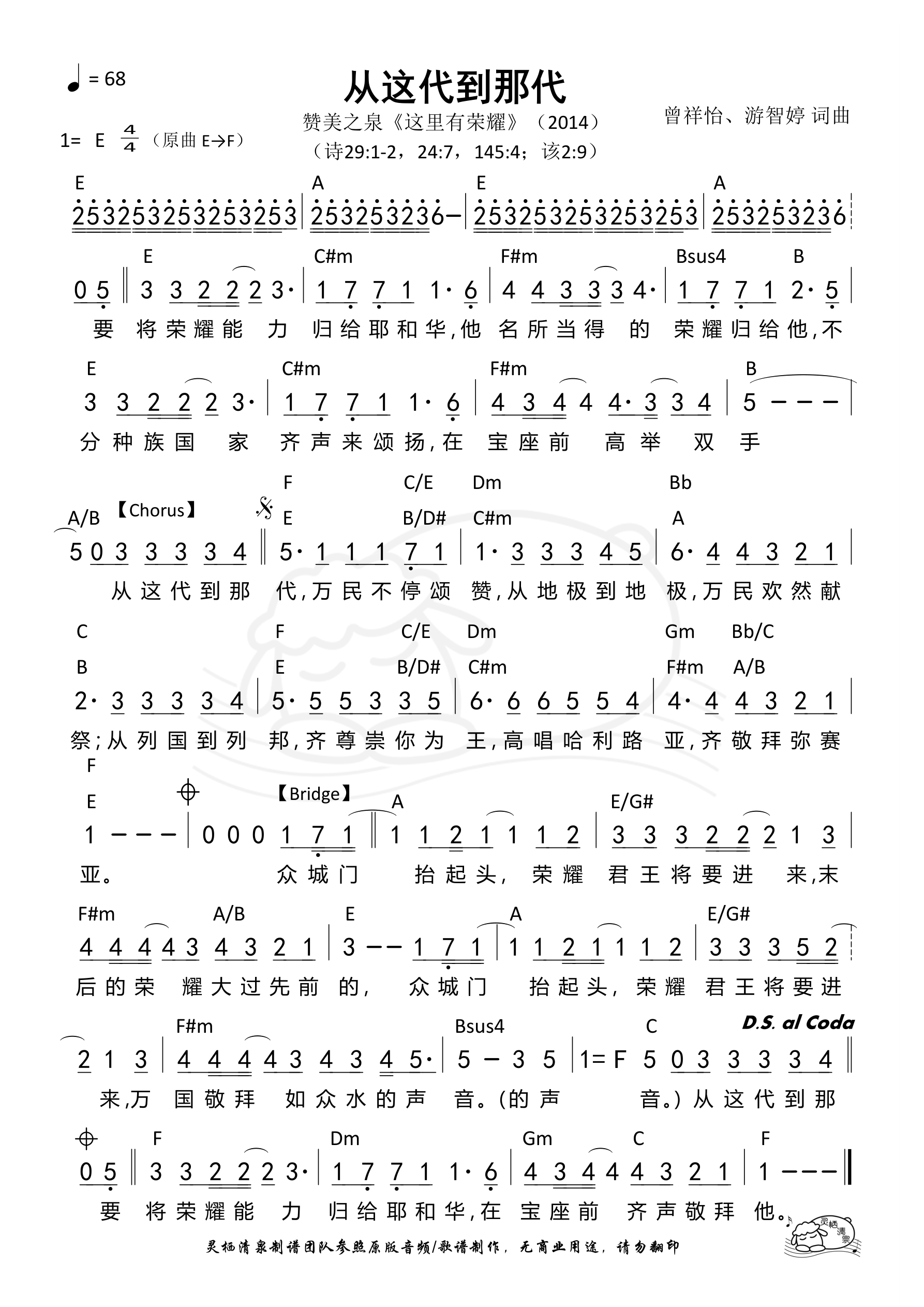 词曲:曾祥怡 游智婷 歌手:赞美之泉 专辑:这里有荣耀 年份:2014