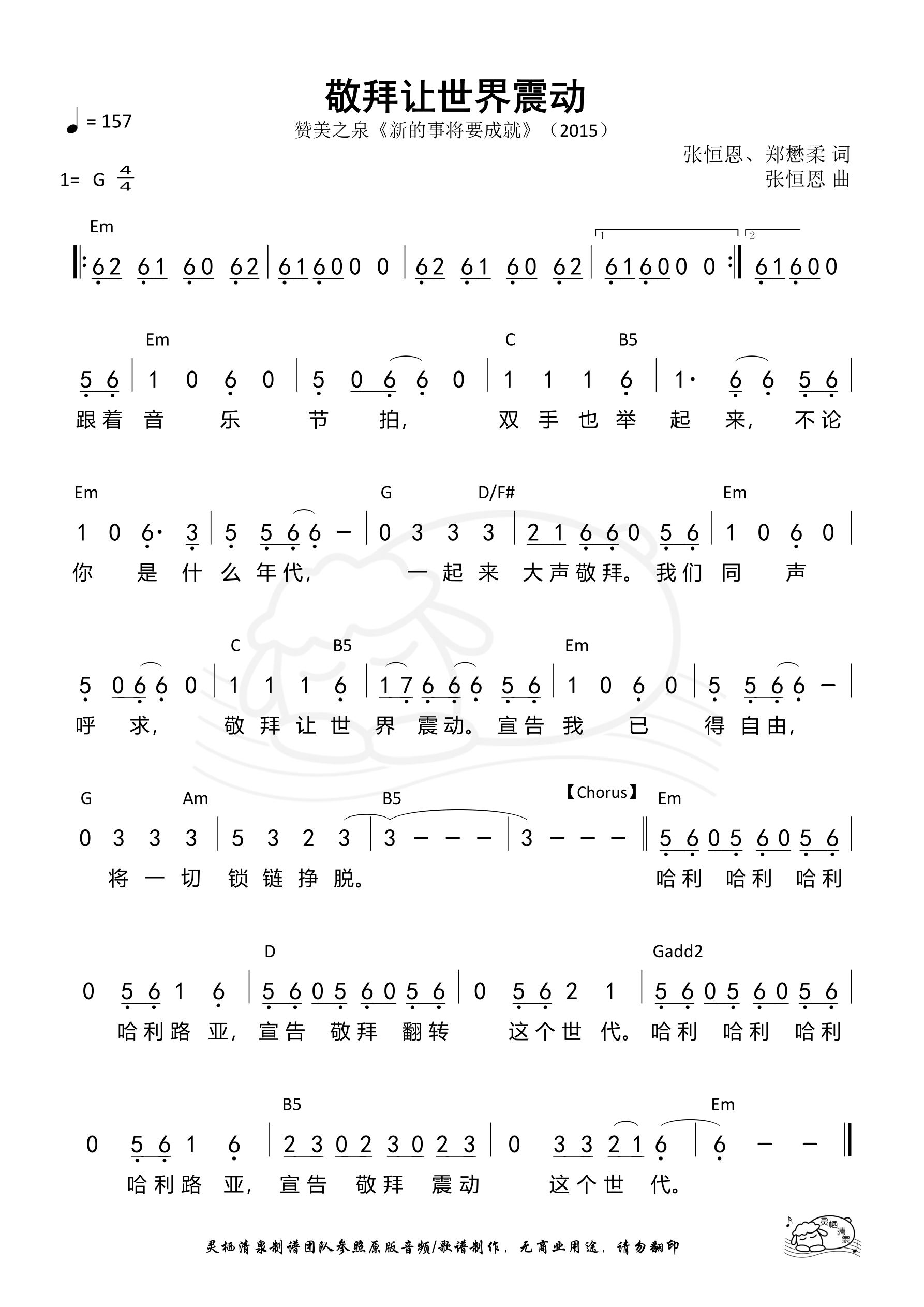作词:张恒恩 郑懋柔 作曲:张恒恩 歌手:赞美之泉 专辑:新的事将要成就 年份:2015