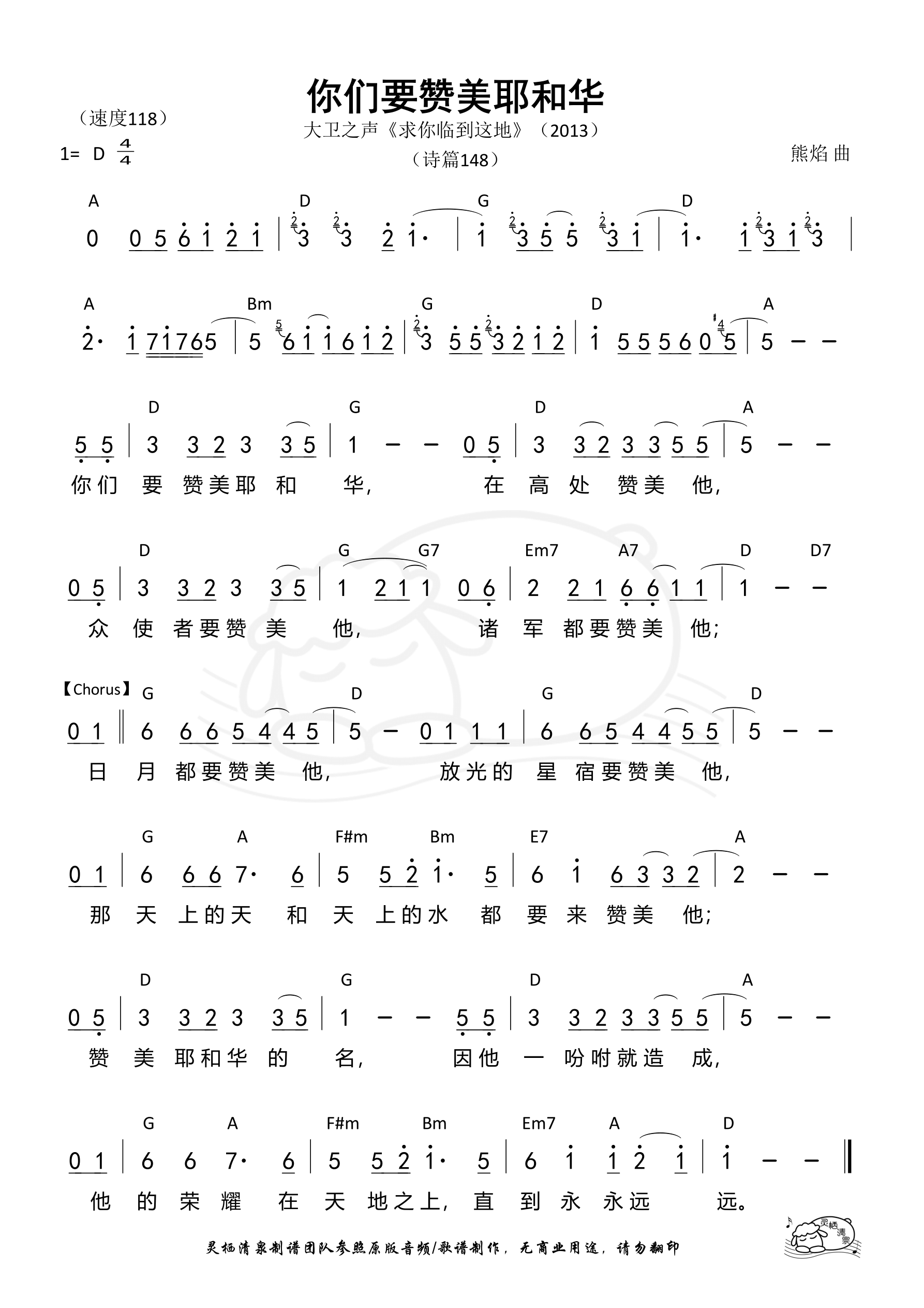 你们要赞美耶和华(F调/赞美之泉)