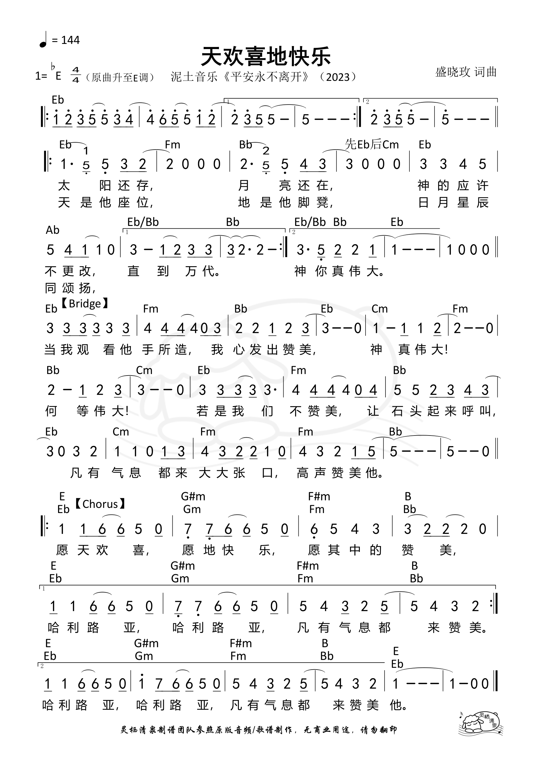 词曲:盛晓玫 歌手:泥土音乐 专辑:平安永不离开 年份:2023