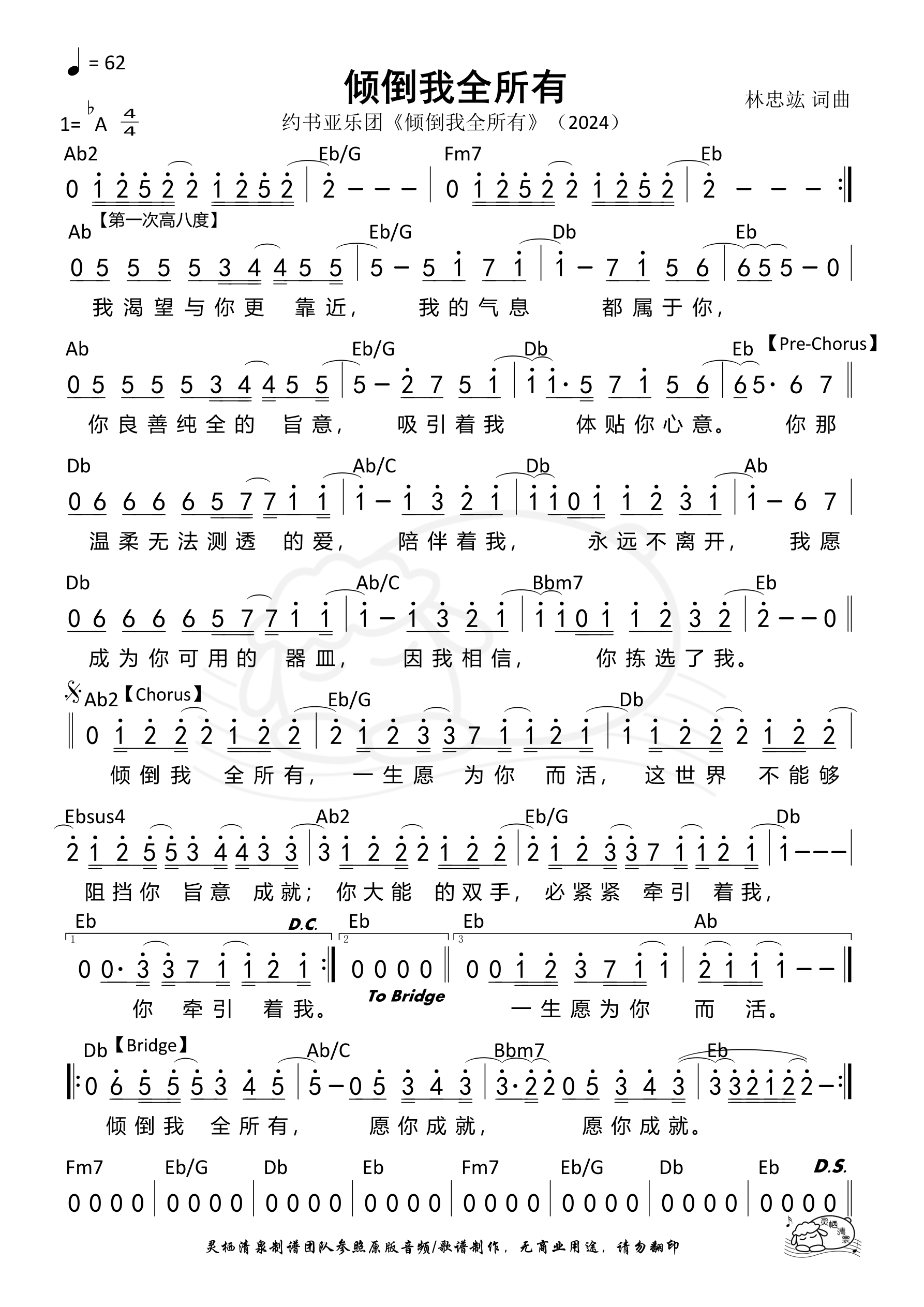 词曲:林忠竑 歌手:约书亚乐团 专辑:倾倒我全所有 年份:2024