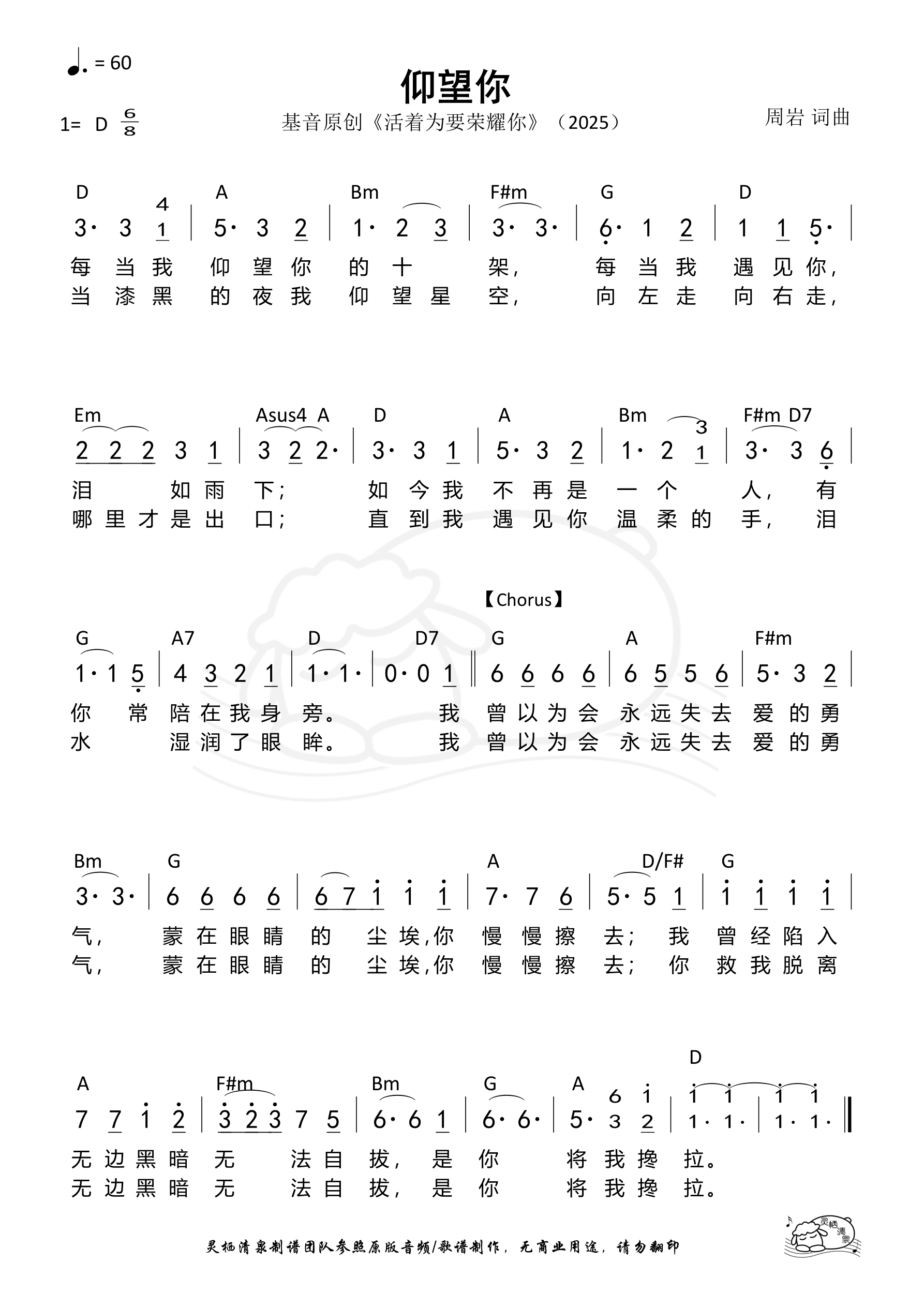 词曲:周岩 歌手:基音原创 专辑:活着为要荣耀你 年份:2025